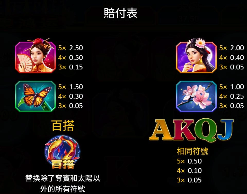 | 遊戲類型 | 電子老虎機/紅利轉盤/東方仕女主題 |
