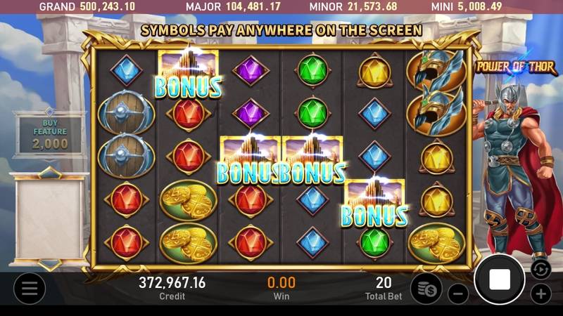 遊戲靈感來源於北歐神話中的雷神索爾,畫面以雷霆、戰火與神秘符號打造,玩家在每次旋轉中都能置身於驚險刺激的神話世界,感受雷霆震撼與極高回報。